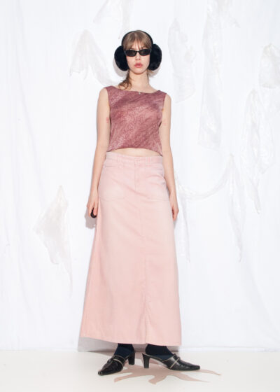 Vintage Y2K Corduroy Maxi Skirt in Pink