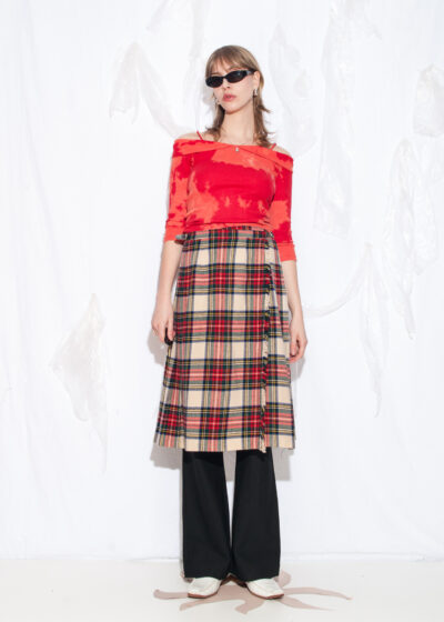 Vintage 70s Wool Kilt Skirt in Beige and Red Plaid
