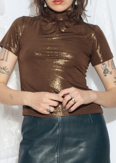 Vintage Y2K Glam Crop Top in Bronze Viscose