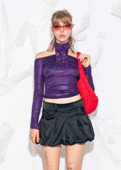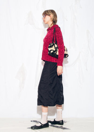 Vintage 80s Party Dress with Bubble Skirt in Black Satin
