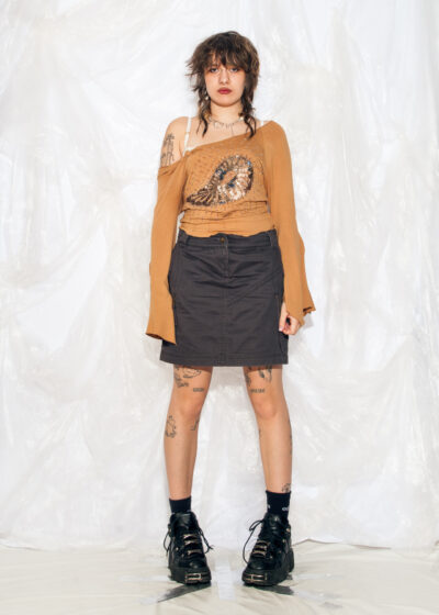 Vintage Y2K Cargo Micro Skirt in Khaki