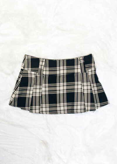 Vintage Y2K Pleated Mini Skirt in Black White Plaid