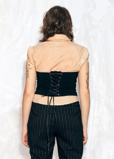 Vintage Y2K Corpcore Corset Blouse in Brown Black