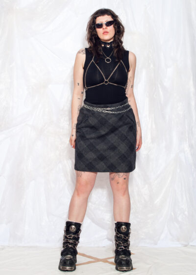 Vintage Y2K Mini Skirt in Plaid Grey Wool Blend