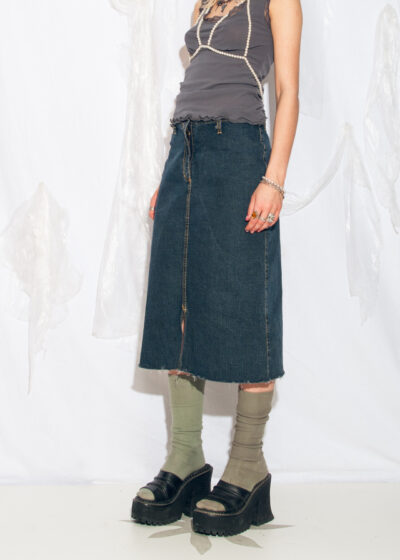 Vintage Y2K Midi Denim Skirt in Mud Wash Blue
