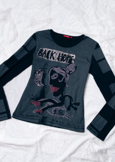 Vintage Y2K Weird Graphic Print Top in Grey Cotton