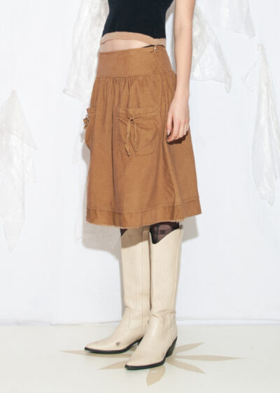 Vintage Y2K Corduroy Midi Skirt in Brown