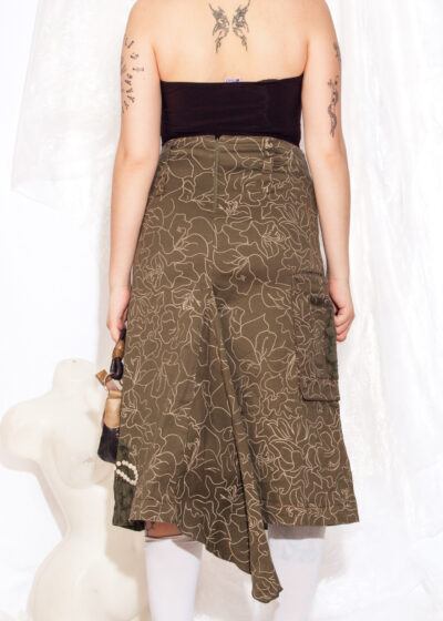 Vintage Y2K Midi Skirt in Khaki Fairycore Embroidered