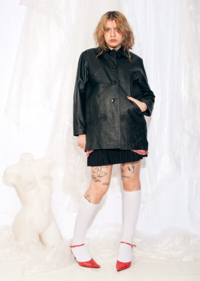 Vintage Leather Coat 80s Paneled Jacket in Black
