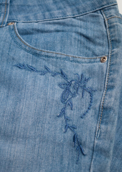 Vintage Y2K Flower Embroidery Capri Jeans in Blue