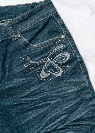 Vintage Y2K Deadstock Flare Jeans w Flower Embroidery