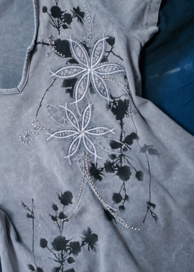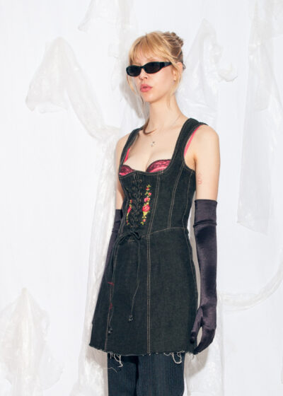 Reworked Vintage 80s Folk Corset Top Dress in Dark Grey
