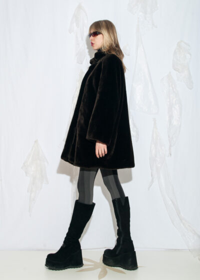 Vintage 80s Plush Teddy Coat in Brown Faux Fur