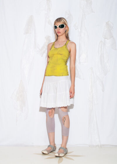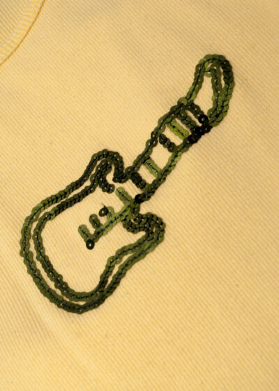 Vintage Y2K Ribbed Tank Top in Yellow w Sequin Guitar