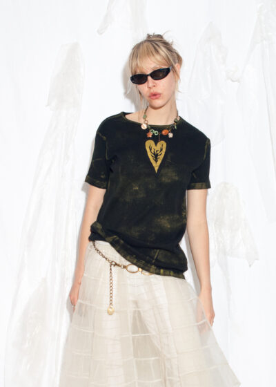 Reworked Vintage Y2K Heart Patch Tee in Green