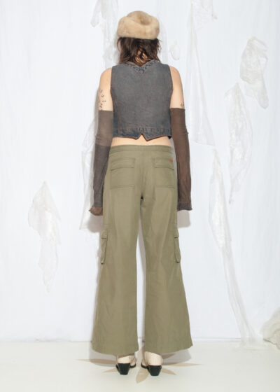 Vintage Y2K Cargo Flare Trousers in Khaki