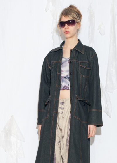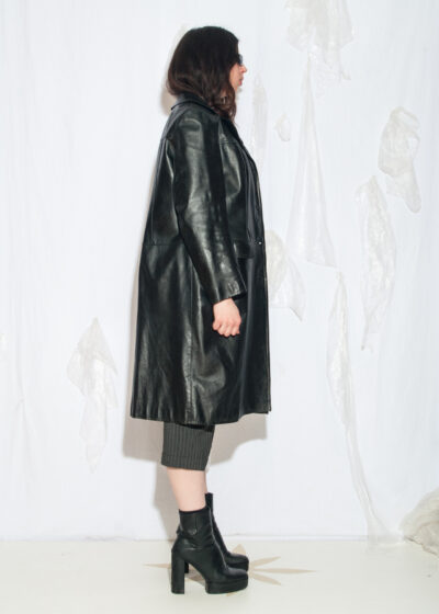Vintage 90s Long Leather Coat in Black by Conbipel