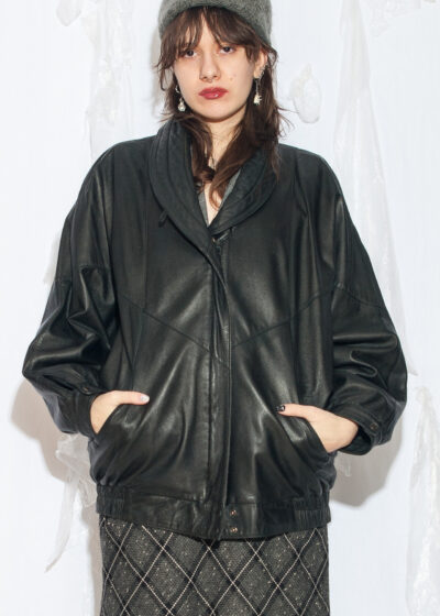 Vintage 80s Oversized Leather Bomber Jacket in Black
