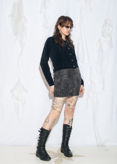 Vintage Y2K Slim Fit Jacket in Black Cotton Corduroy