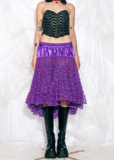 Vintage Y2K Asymmetric Midi Skirt in Purple Lace