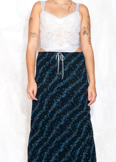 Vintage 90s Maxi Skirt in Whimsigoth Blue with Satin Bow