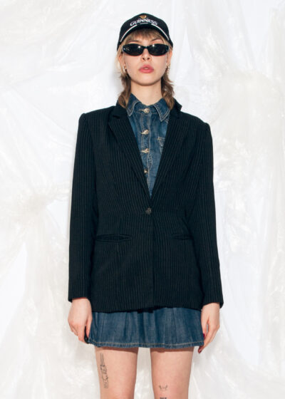 Vintage Y2K Long Blazer in Black Pinstriped