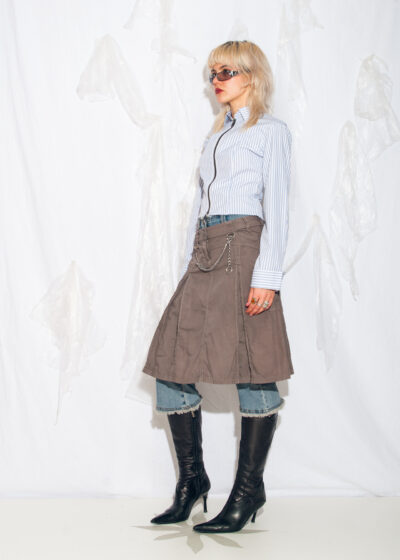 Vintage Y2K Grunge Cargo Midi Skirt in Grey