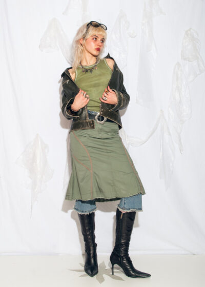 Vintage Y2K Midi Skirt in Mud Wash Khaki