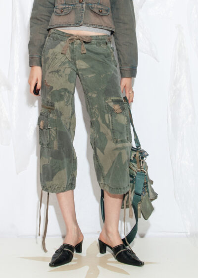 Vintage Y2K Cargo Capri Trousers in Camo Khaki
