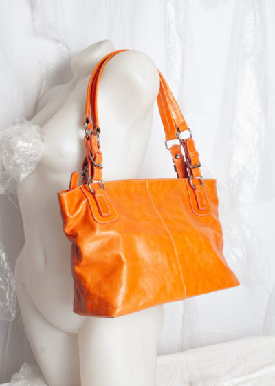 Reworked Vintage Y2K Leather Shoulder Bag with Silver Chain