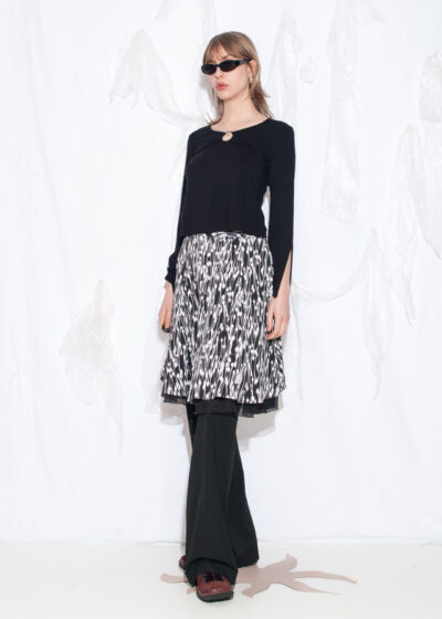 Vintage Y2K Midi Skirt in Black and White with Tulle