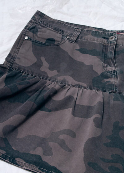 Vintage Y2K Frilly Camo Micro Skirt in Brown Cotton