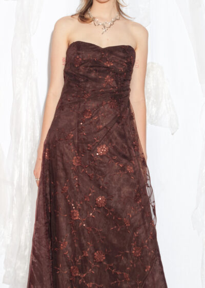 Vintage Y2K Ruched Silk Evening Dress in Grey