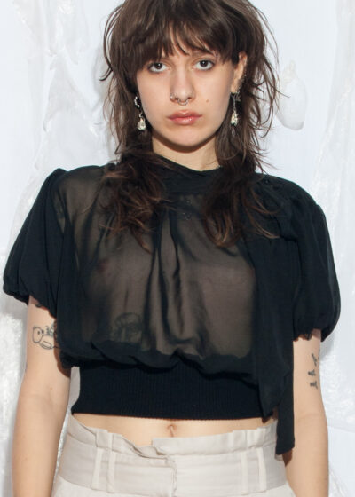 Vintage Y2K Sheer Office Blouse in Black with Bow