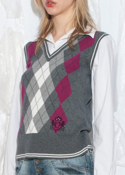 Vintage 80s Gin Tonic Wool Vest in Grey