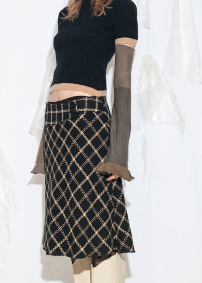 Vintage Y2K Plaid Midi Skirt in Brown Wool Blend