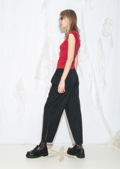 Vintage 80s Pinstriped Pleated Trousers in Black Wool Blend