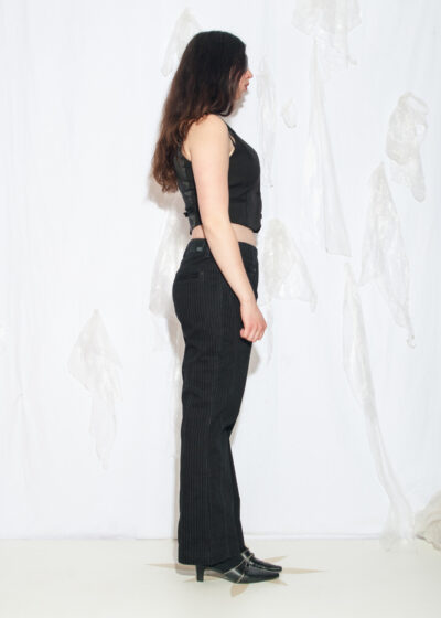 Vintage Y2K Pinstriped Flare Jeans in Black