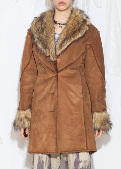 Vintage Y2K Faux Shearling Penny Lane Coat in Brown