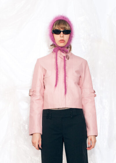 Vintage Y2K Leather Racing Jacket in Pink by Isaco