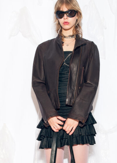 Vintage Y2K Moto Racing Faux Leather Jacket in Black