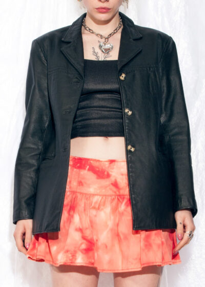 Vintage Leather Jacket 90s Matrix Preppy Coat in Black