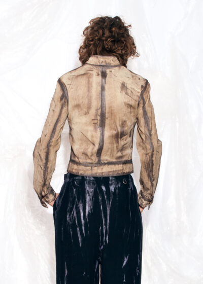 Reworked Vintage Y2K Leather Jacket in Beige Hand Painted
