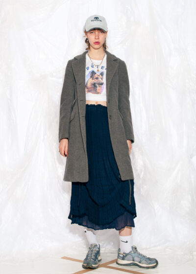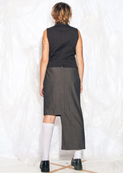 Vintage 90s Midi Skirt in Grey Wool Reworked Asymmetric Cut