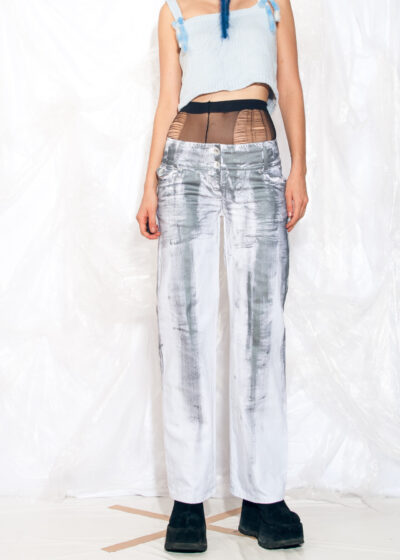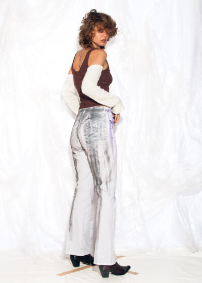 Vintage Y2K Reworked Flare Trousers in Silver Hand Painted
