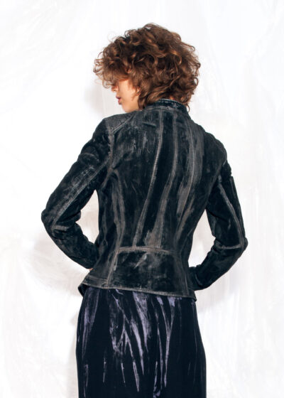 Vintage Y2K Leather Jacket in Black Reworked Hand-painted