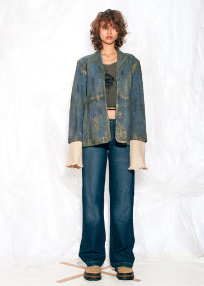 Vintage 90s Reworked Leather Jacket in Blue Hand-Painted