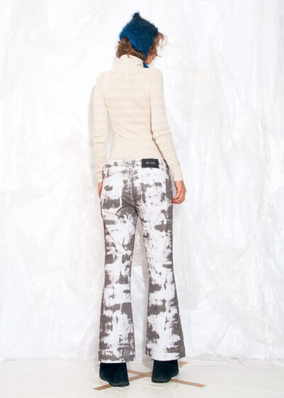 Reworked Vintage Y2K Flare Trousers in White Hand Painted