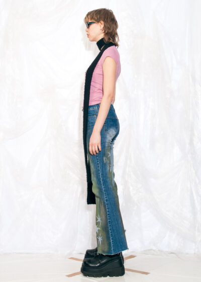 Vintage Y2K Reworked Flare Jeans in Hand Painted Green