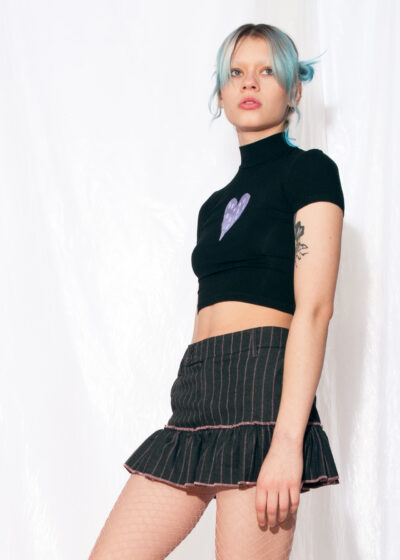 Vintage Skirt Y2K Reworked Frilly Mini in Grey Striped